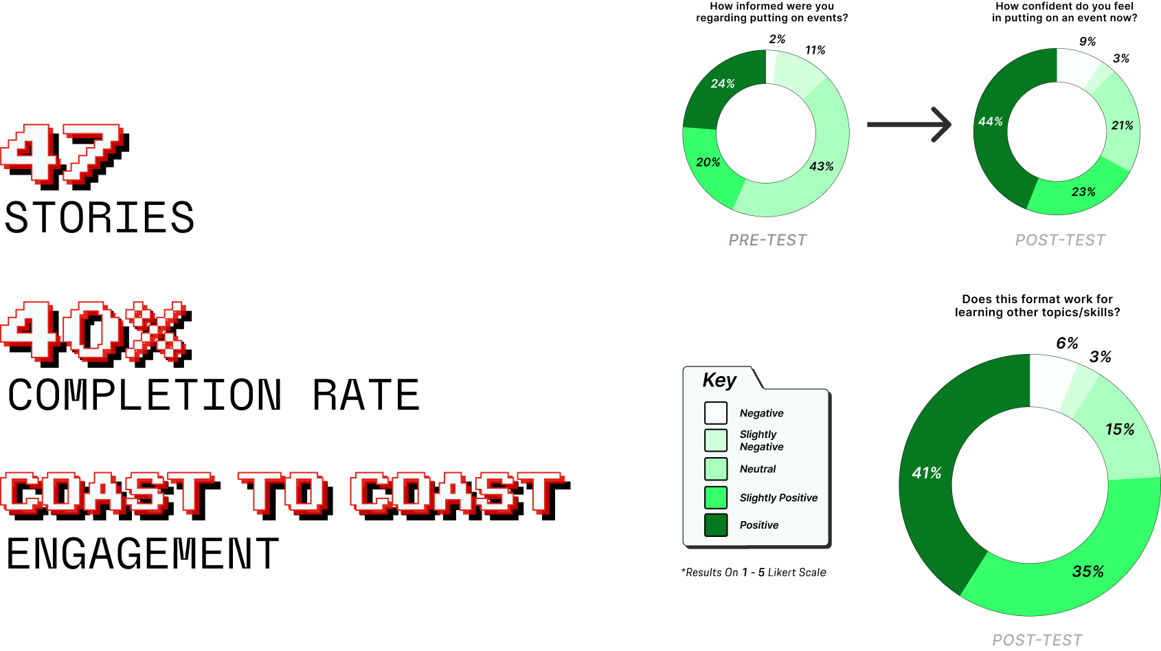 Results showed clear confidence growth and more positive sentiment after associates explored the Employee Playbook, though 45% remained neutral, signaling the need for more personalized, hands-on support in future iterations.
